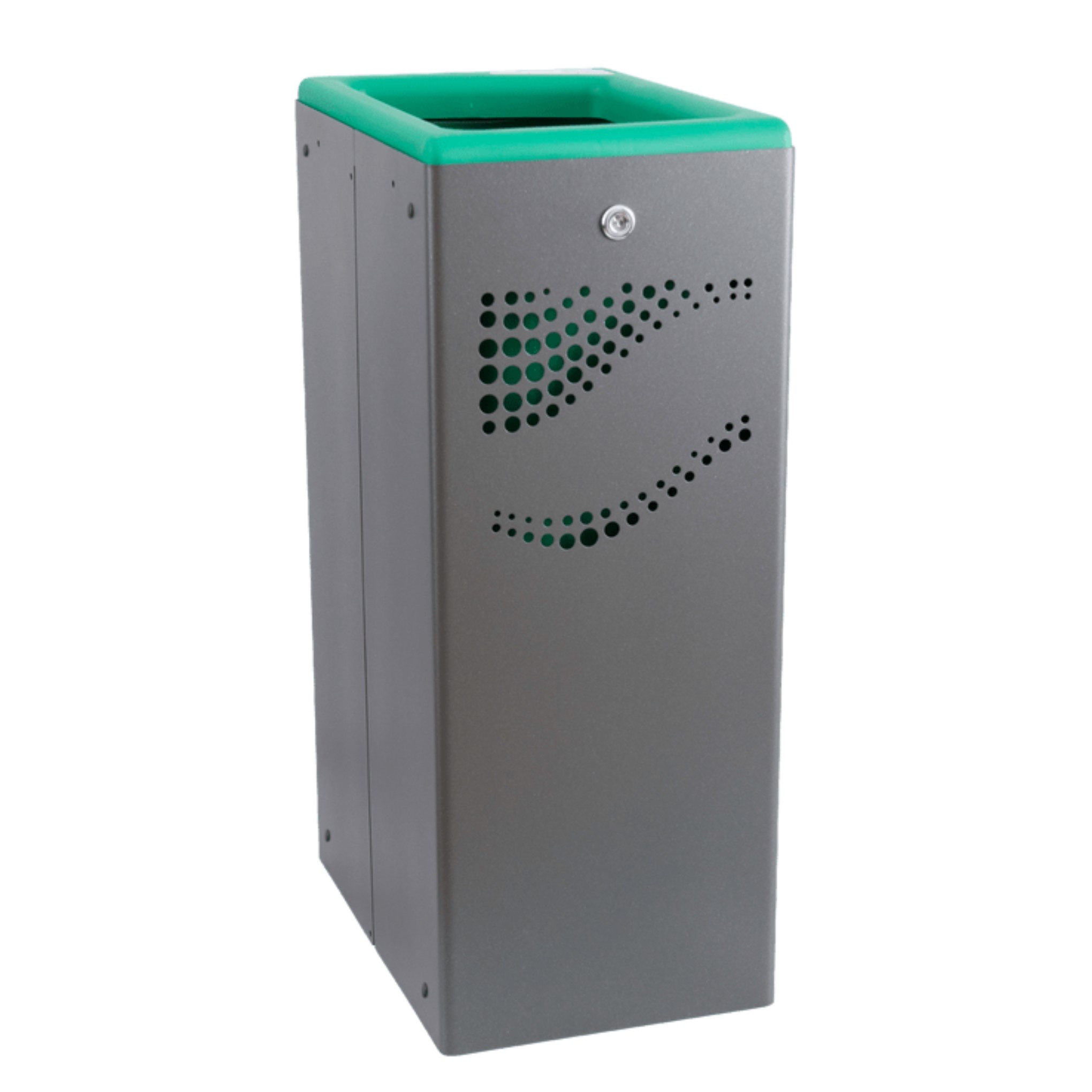 Κάδος ανακύκλωσης της JOFEL κατασκευασμένος από γαλβανισμένο χάλυβα υψηλής ποιότητας και αντοχής. Βαμμένος με πολυεστερική βαφή. Διαθέτει εσωτερικό κάδο κατασκευασμένο από πολυπροπυλένιο. Συνιστάται για πολυκαταστήματα, εμπορικά κέντρα, αεροδρόμια, σιδηροδρομικούς σταθμούς κλπ.