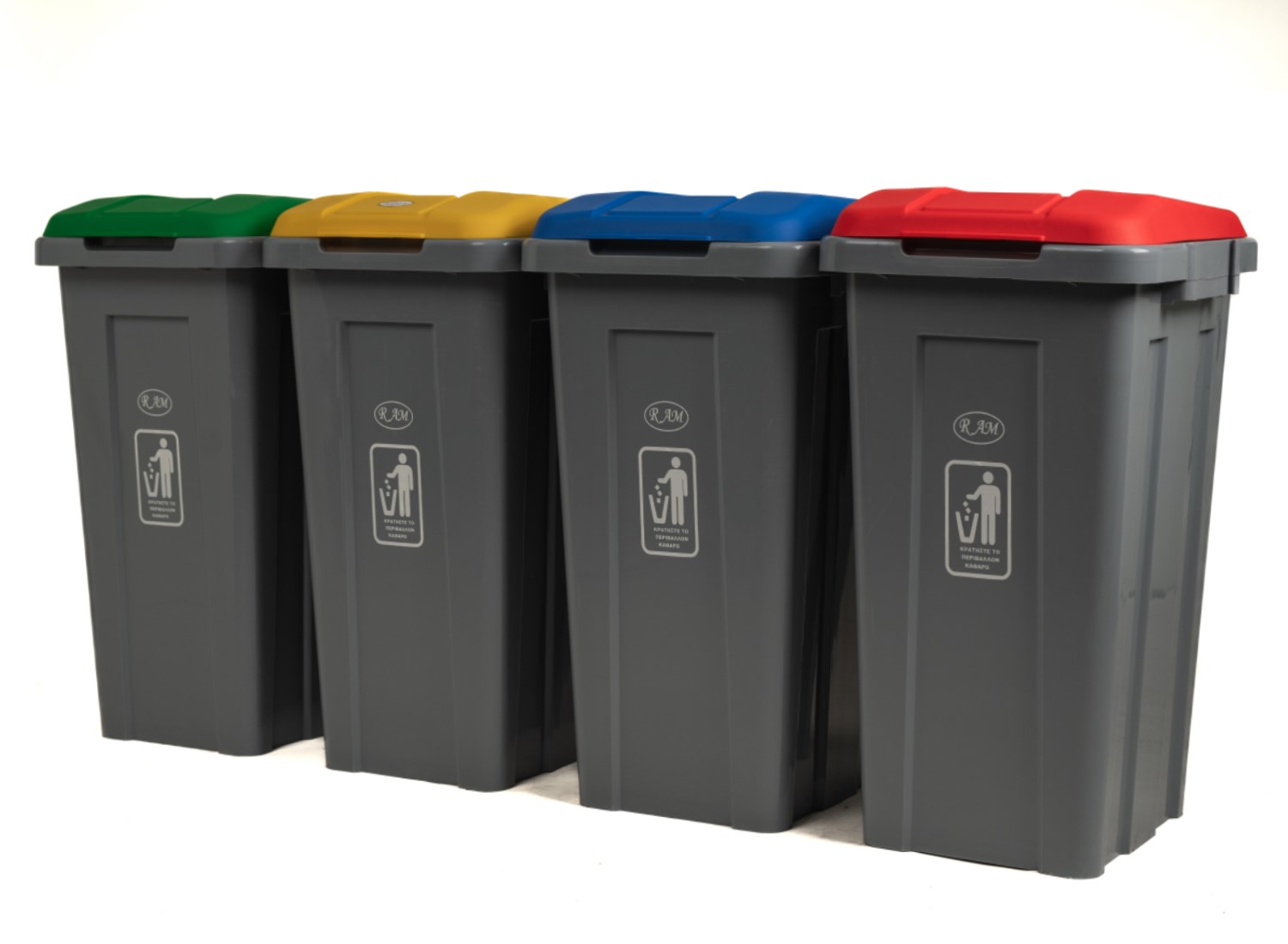 Κάδος ανακύκλωσης της RAM, κατασκευασμένος από ABS. Διαθέτει εσωτερικό πλαίσιο για να κρατά την σακούλα και υποδοχή στα πλάγια ώστε να συνδέεται με άλλους για τον διαχωρισμό των υλικών προς ανακύκλωση.